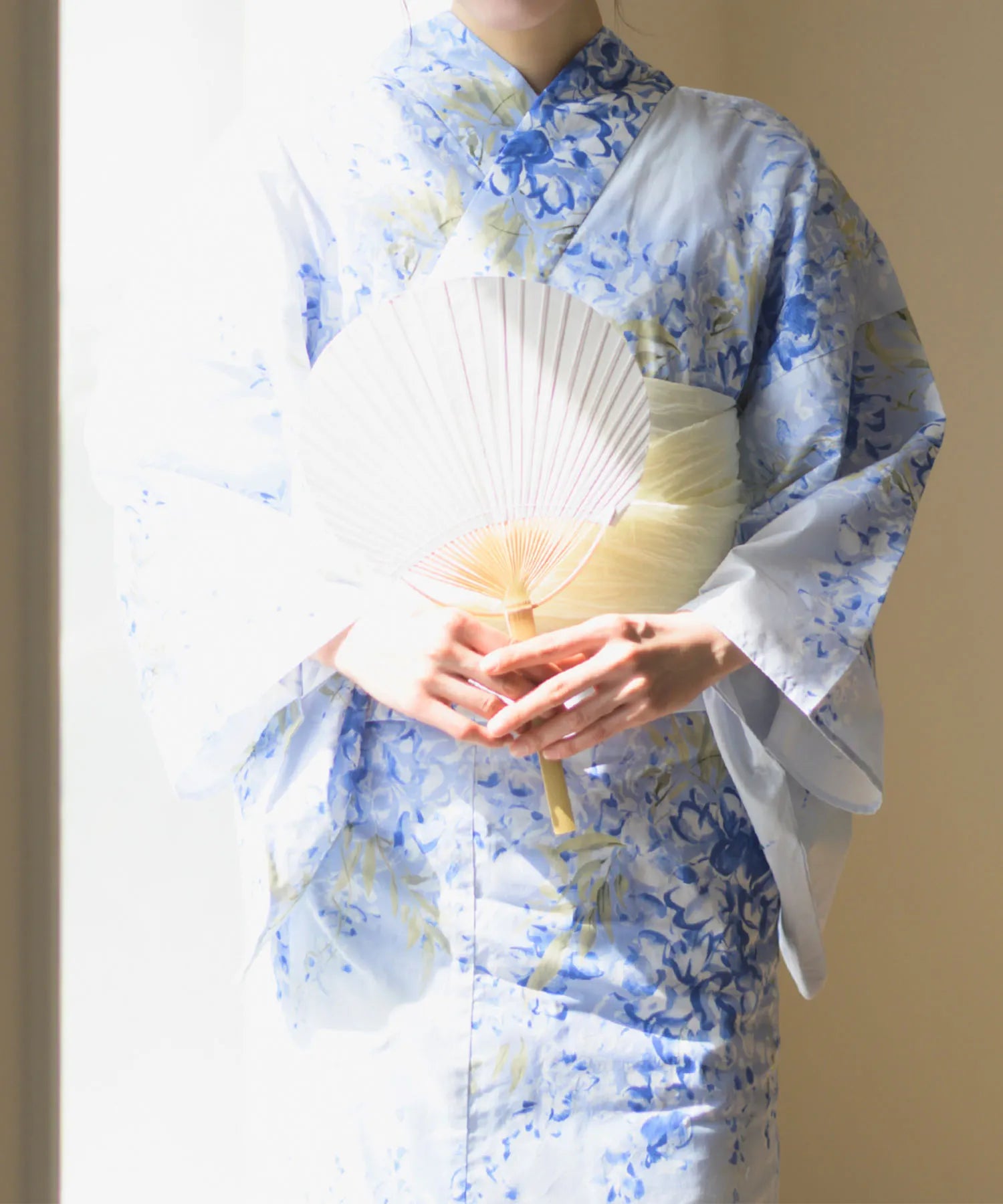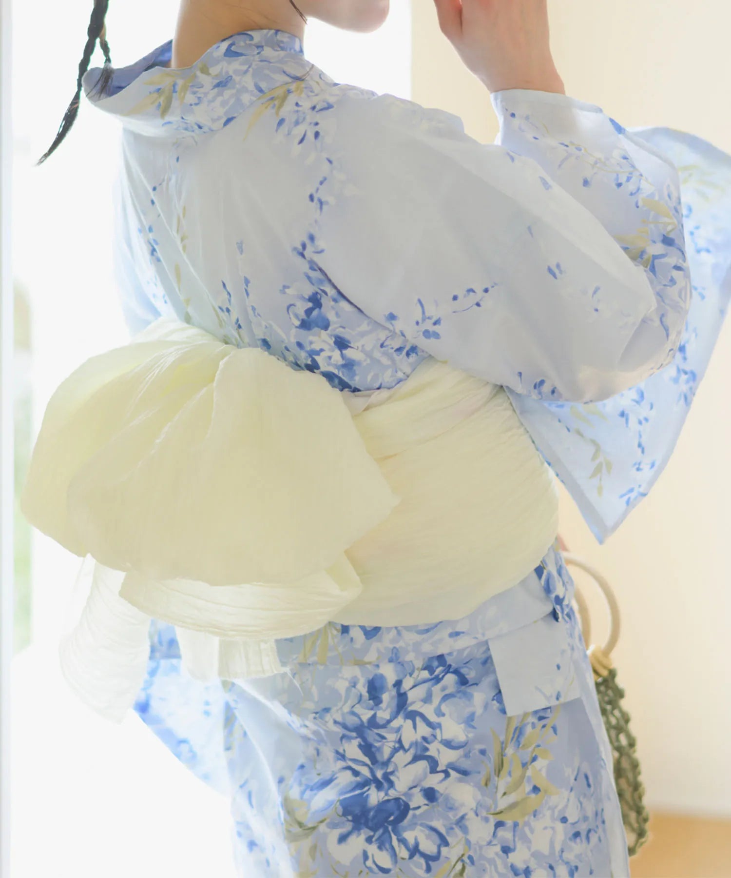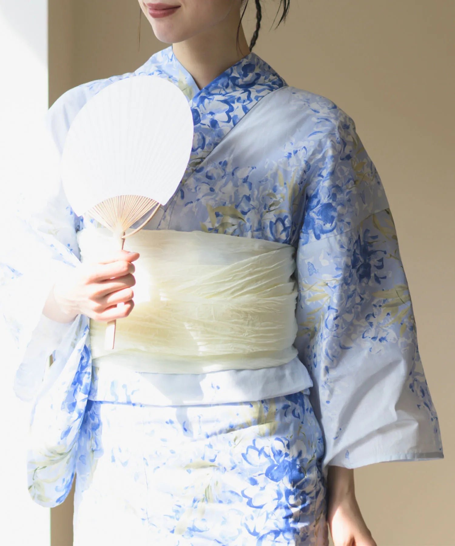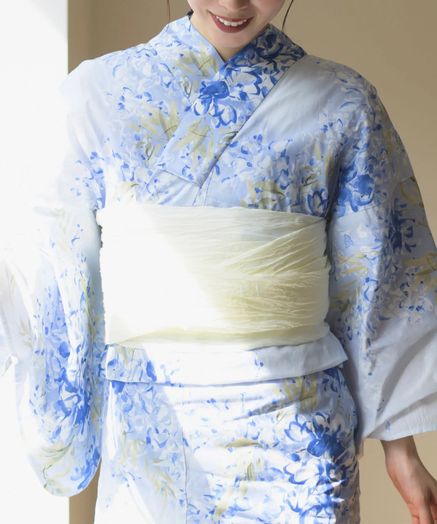 柔らかな真珠色の兵児帯を合わせることで、優雅で涼感漂う大人の装いに仕上げました。