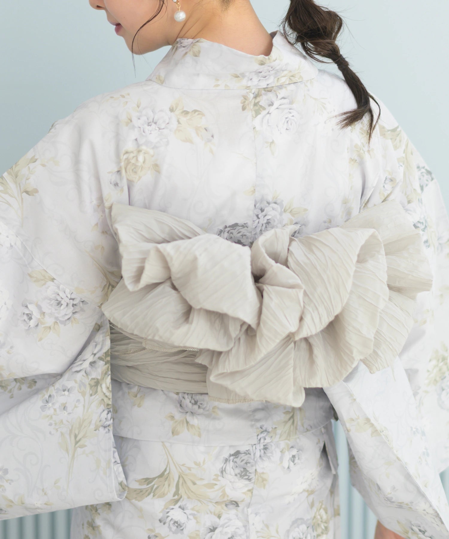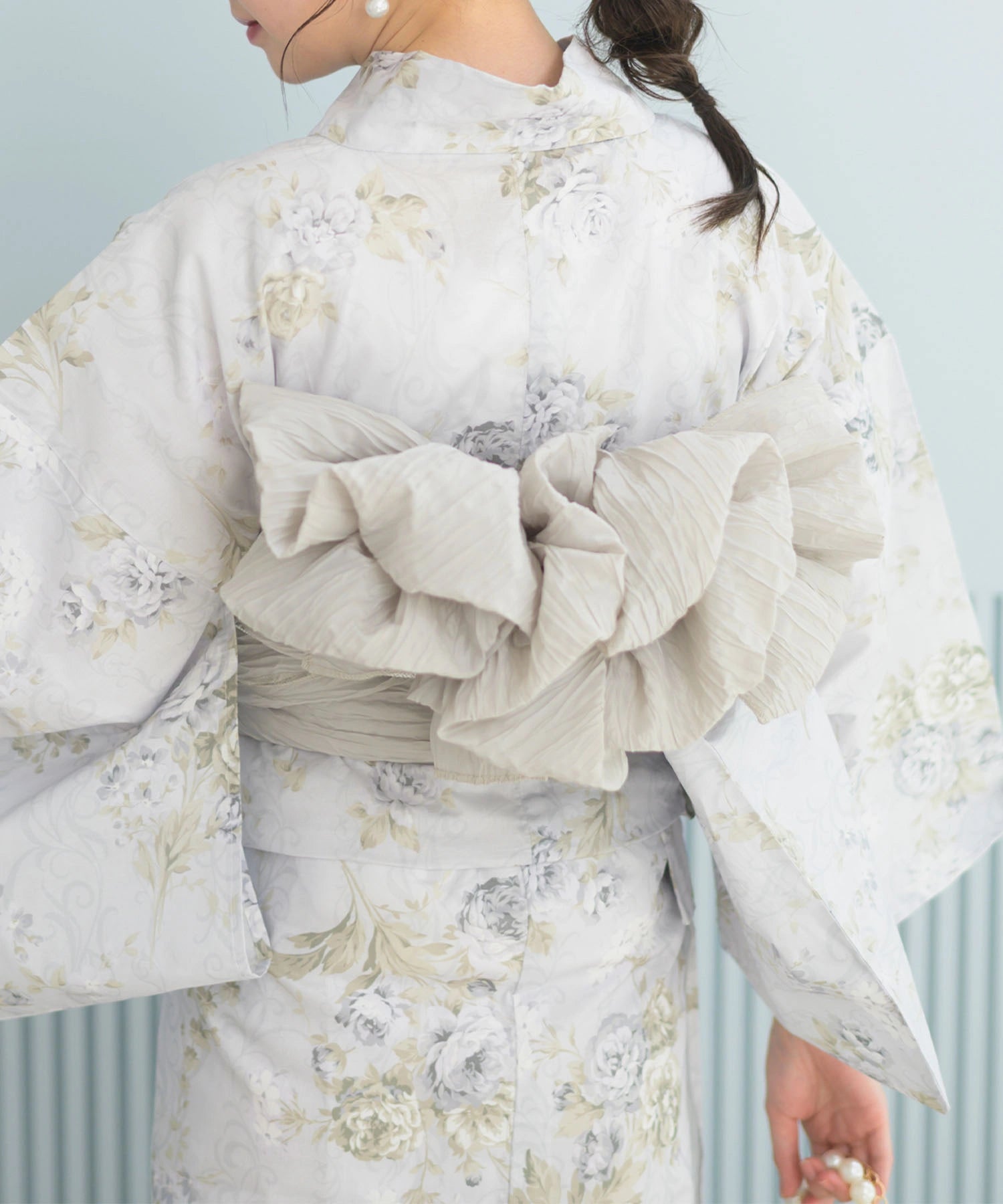 シンプルなカラーリングの浴衣に、可愛いアクセントを加える兵児帯の組み合わせが大人可愛い浴衣セット。